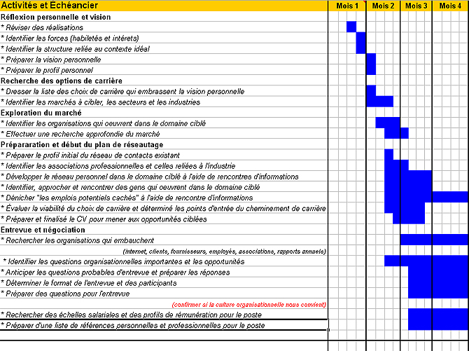 La transition vers votre prochaine carrière se veut un processus répétitif qui devrait vous amenez à un rôle qui convient à vos aptitudes, à vos habiletés, à vos intérêts professionnels ainsi qu’à vos aspirations personnelles, le tout dans un contexte qui se marie avec vos valeurs. Afin de bien faire cette transition, vous devez être motivé et adopté une approche disciplinée. Nous vous fournirons la structure, la méthodologie et le support dont vous avez besoin.